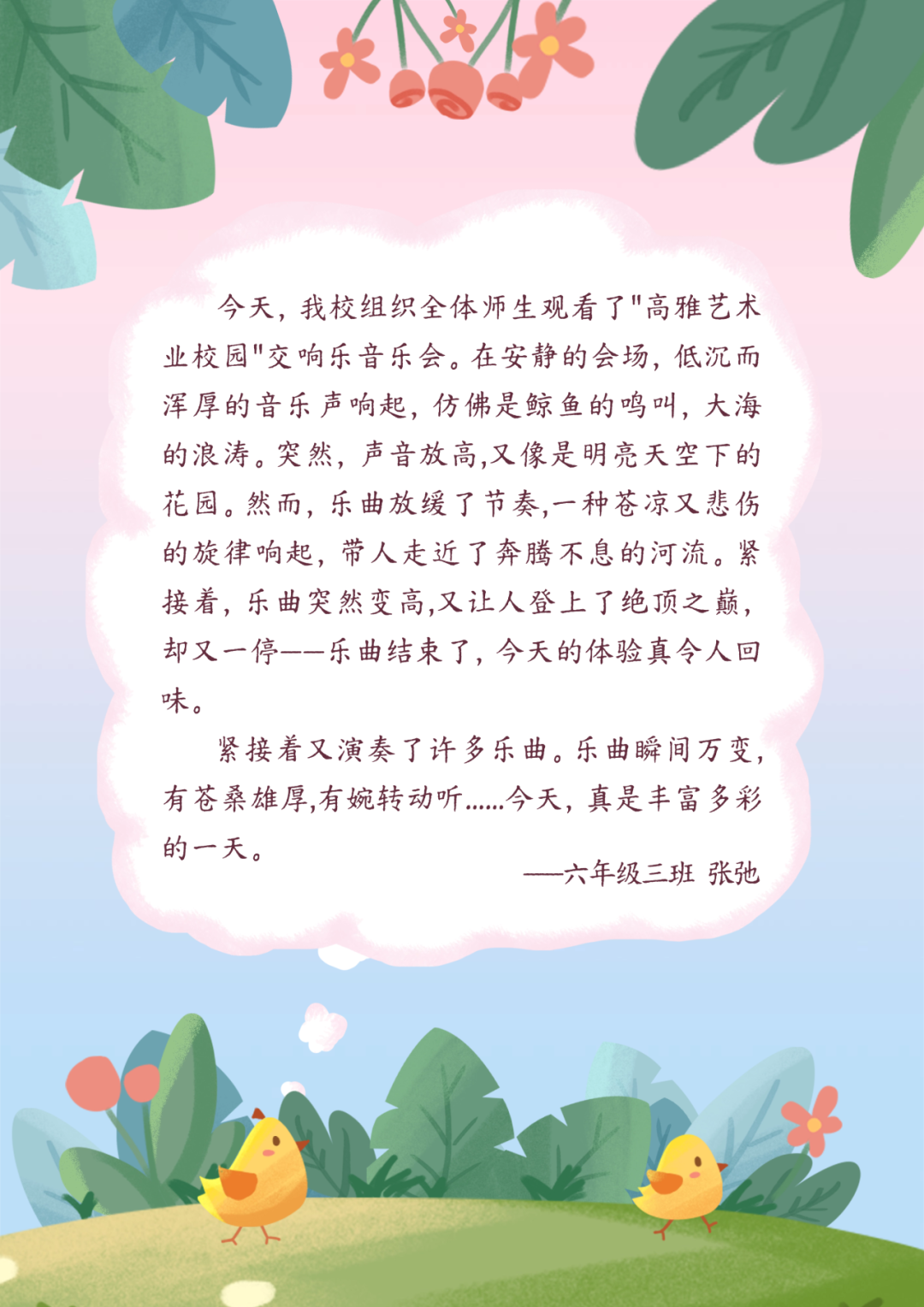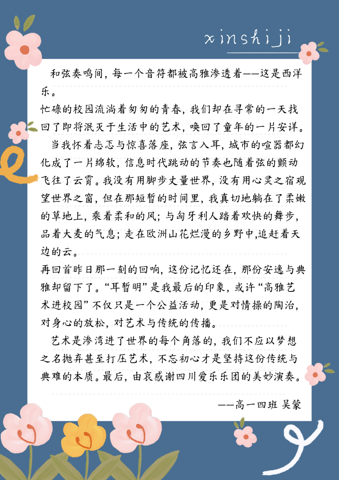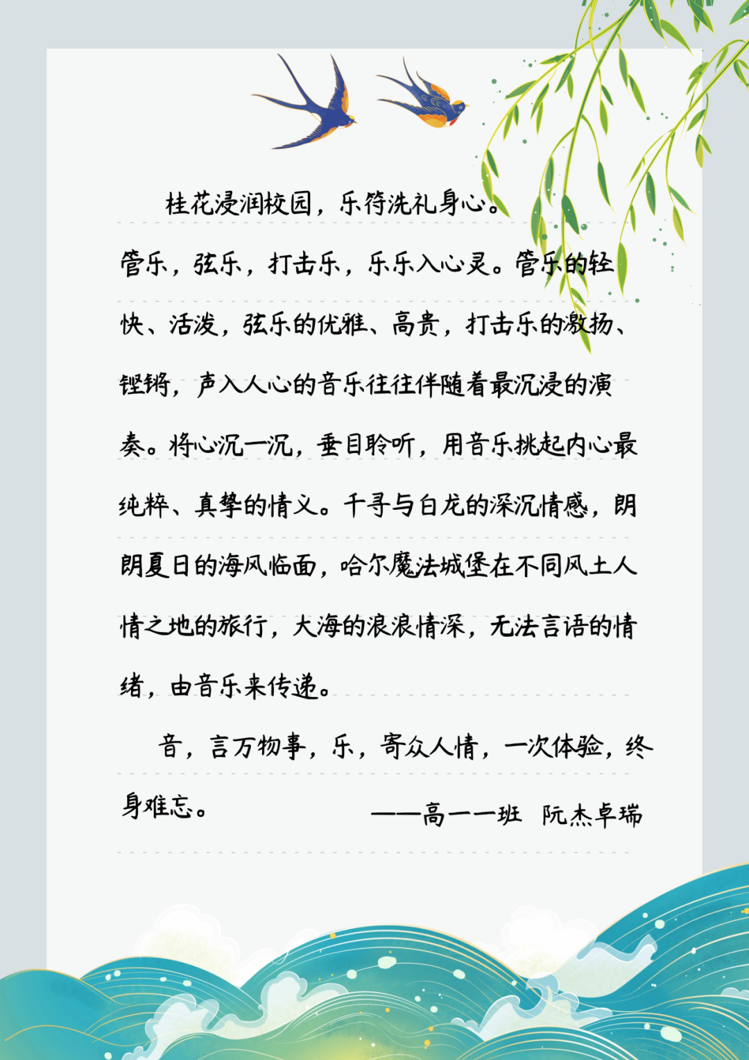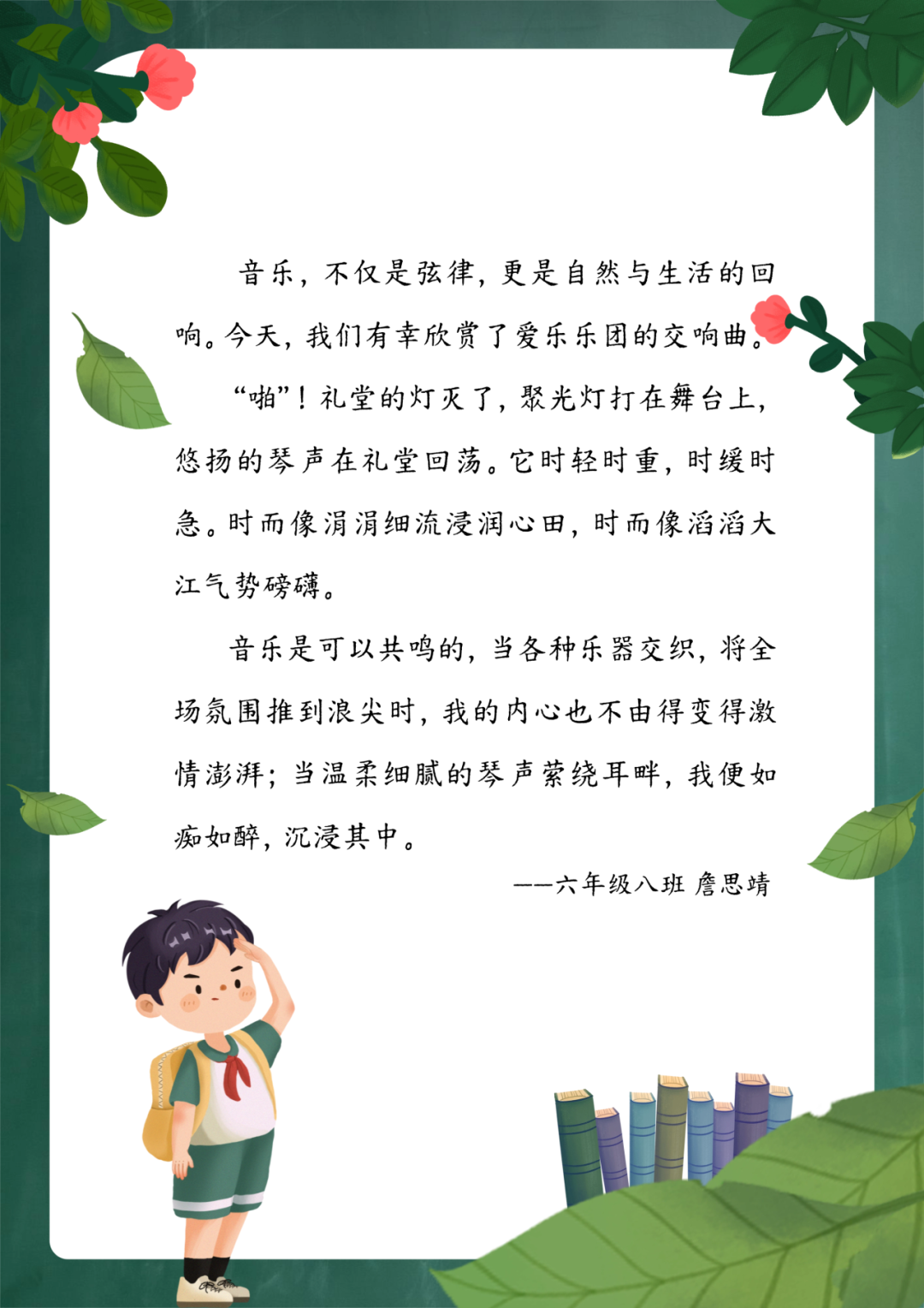 每一首交响曲的完美呈现,都离不开每一位演奏家的全情投入和彼此间默契的配合。这正如我们的班集体,每个人各有所长,只有当我们心往一处想,劲往一处使,才能奏响属于我们自己的、最辉煌的青春乐章!