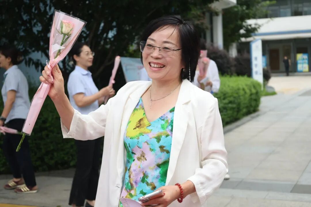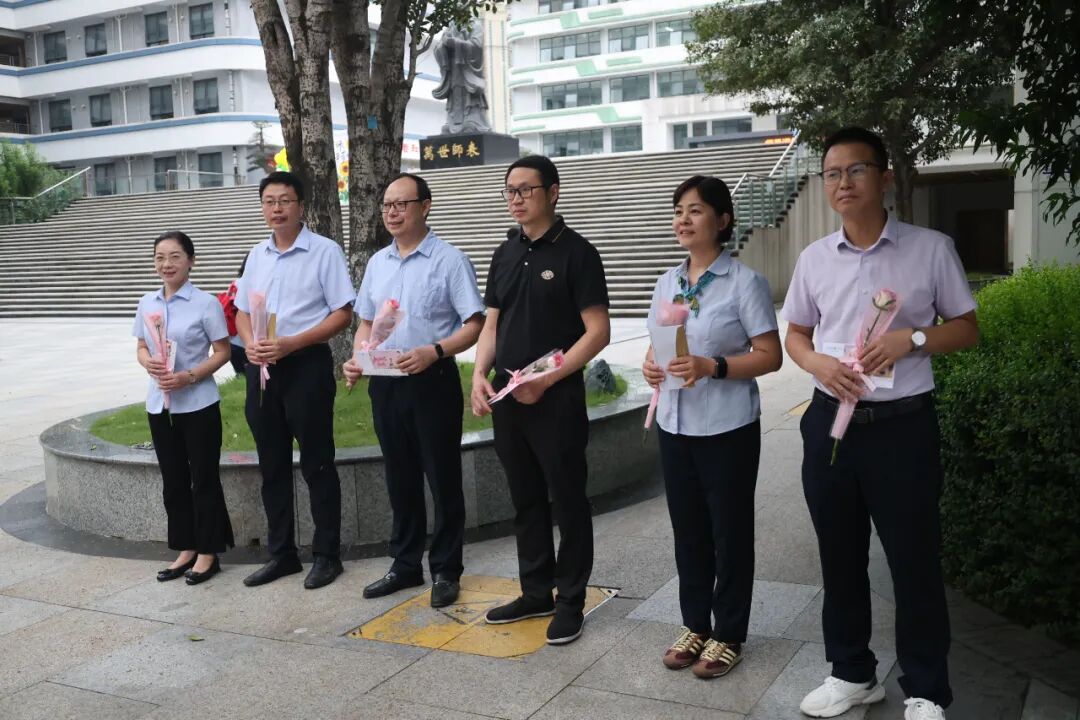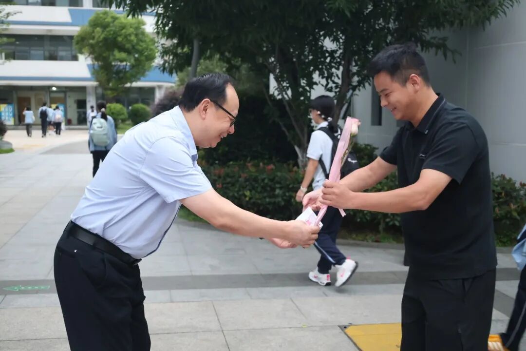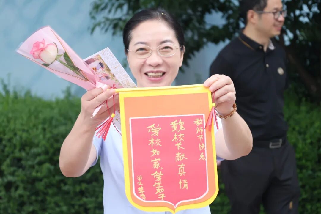 清晨7:00,两校区正大门处,校领导早早守候在此。用一句“老师,节日快乐”和一支鲜花,第一缕阳光与第一份礼物一同而至,让全体教职员工的初秋满是暖意。