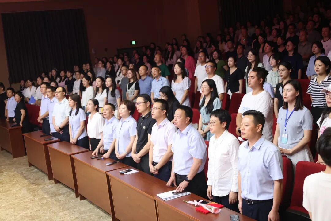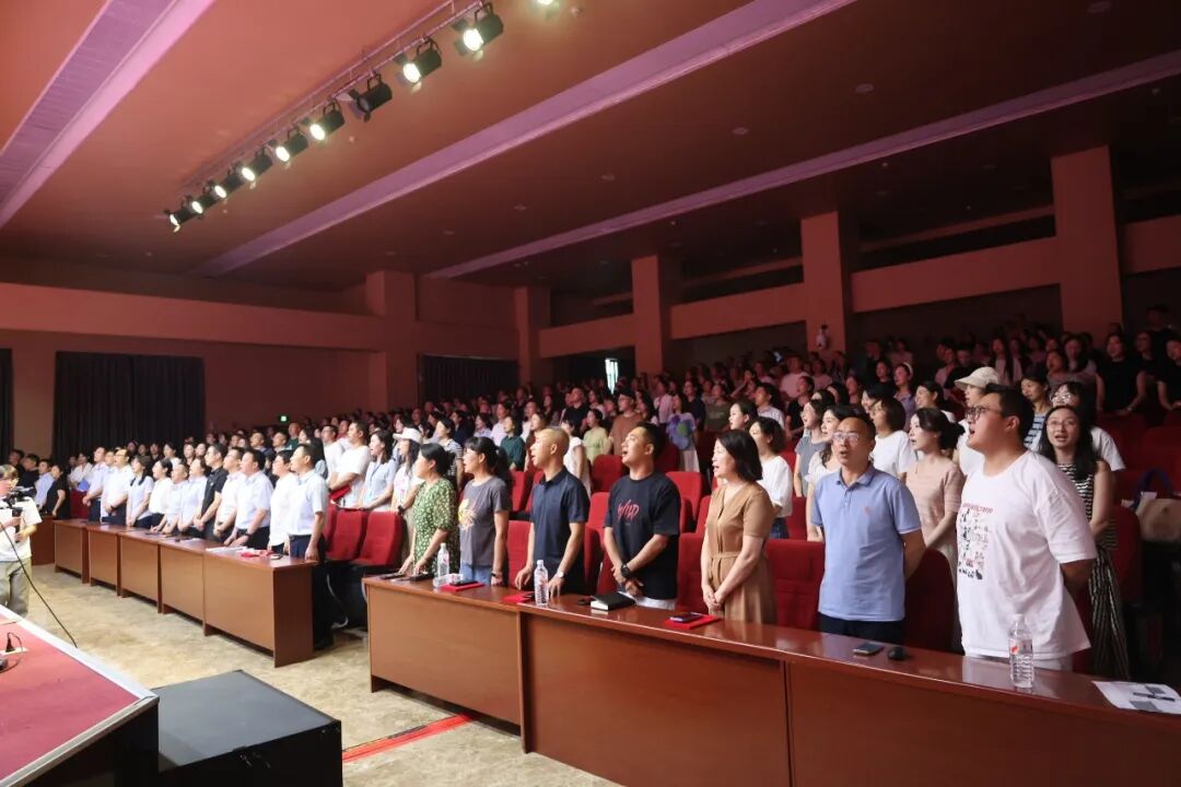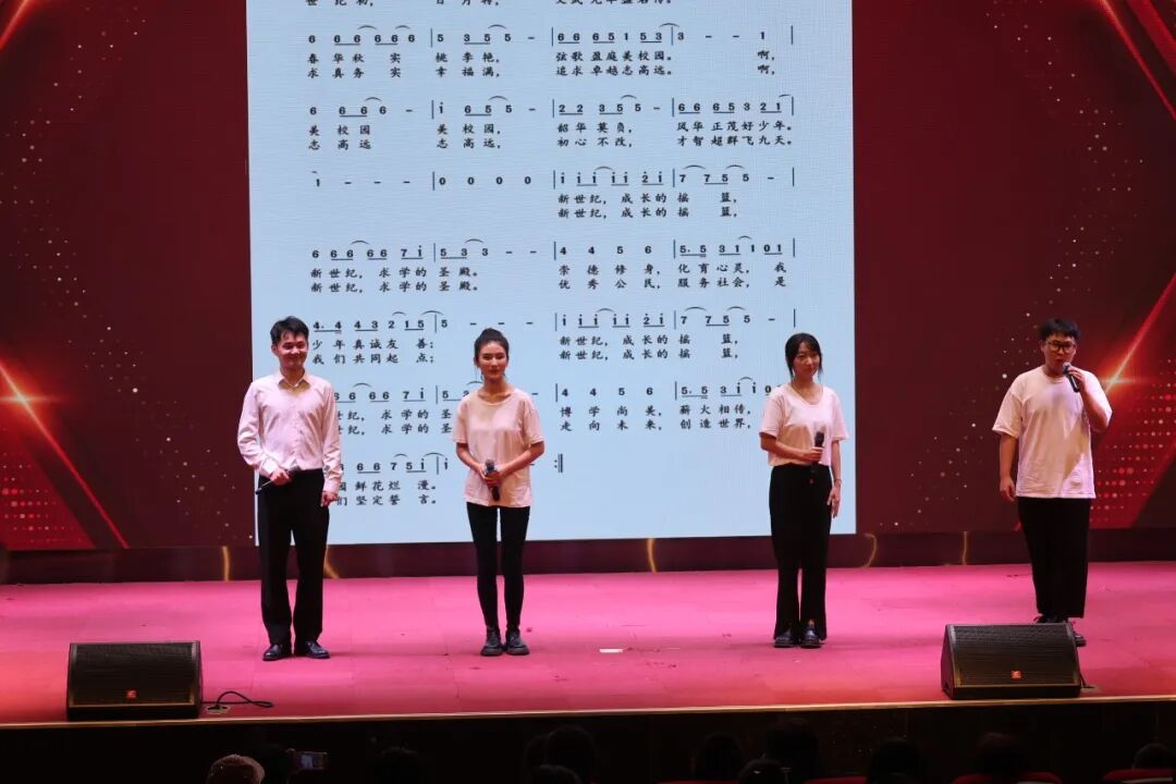 全校齐唱校歌和《歌唱祖国》,歌声把“小我”融进“大我”,把“教育梦”汇入“中国梦”。