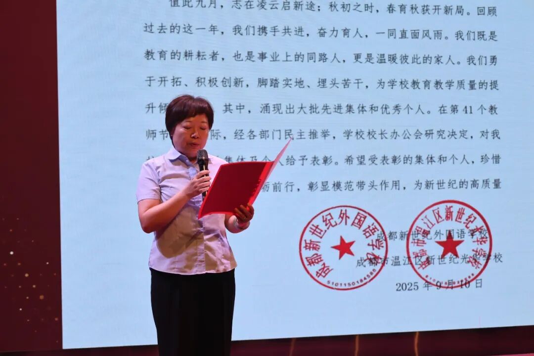 花好月圆时,桃李正芬芳。2025年9月10日,我们迎来了第41个教师节。为致敬每一位坚守教育初心的 “耕耘者”,新世纪两校区开展了以 “以教育家精神铸魂强师,谱写教育强国建设华章” 为主题的庆祝表彰活动,让这个属于教师的节日满溢敬意与温情。