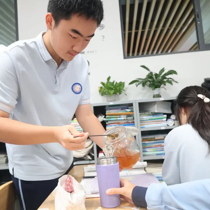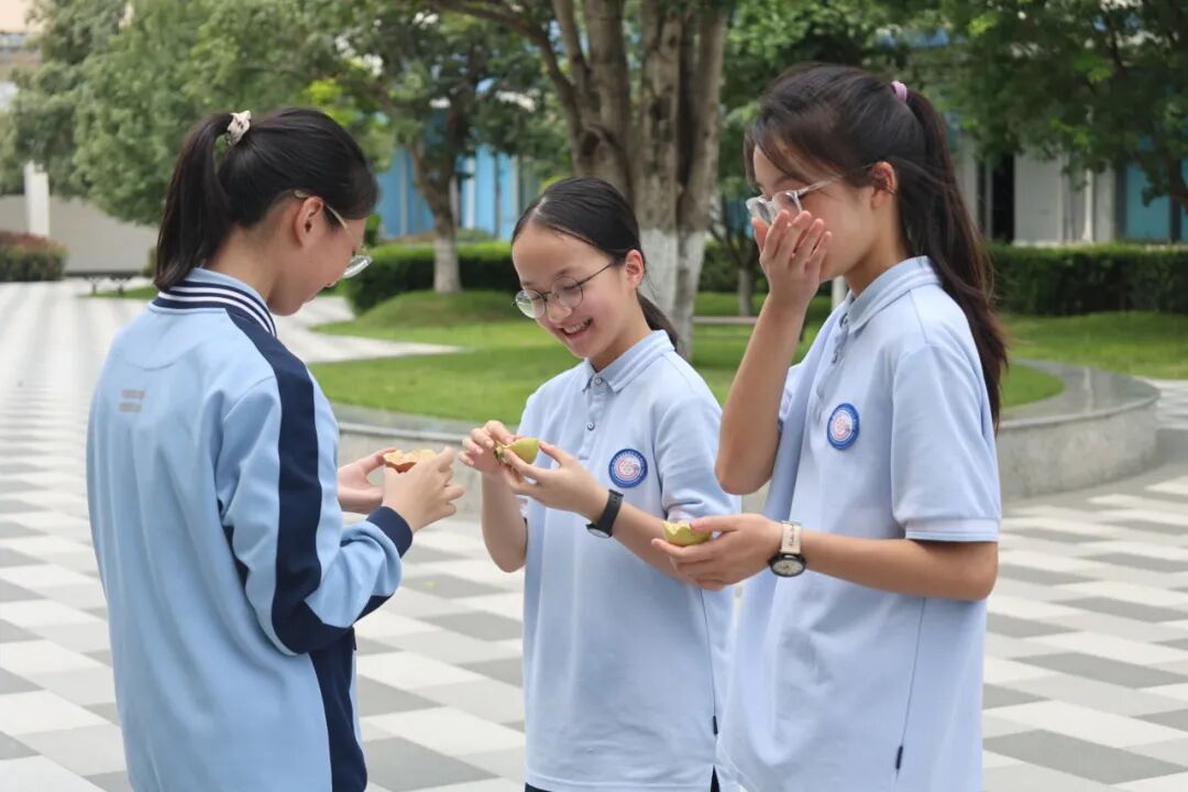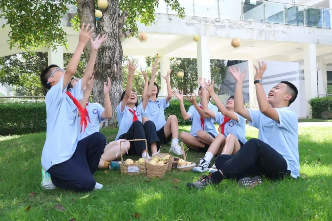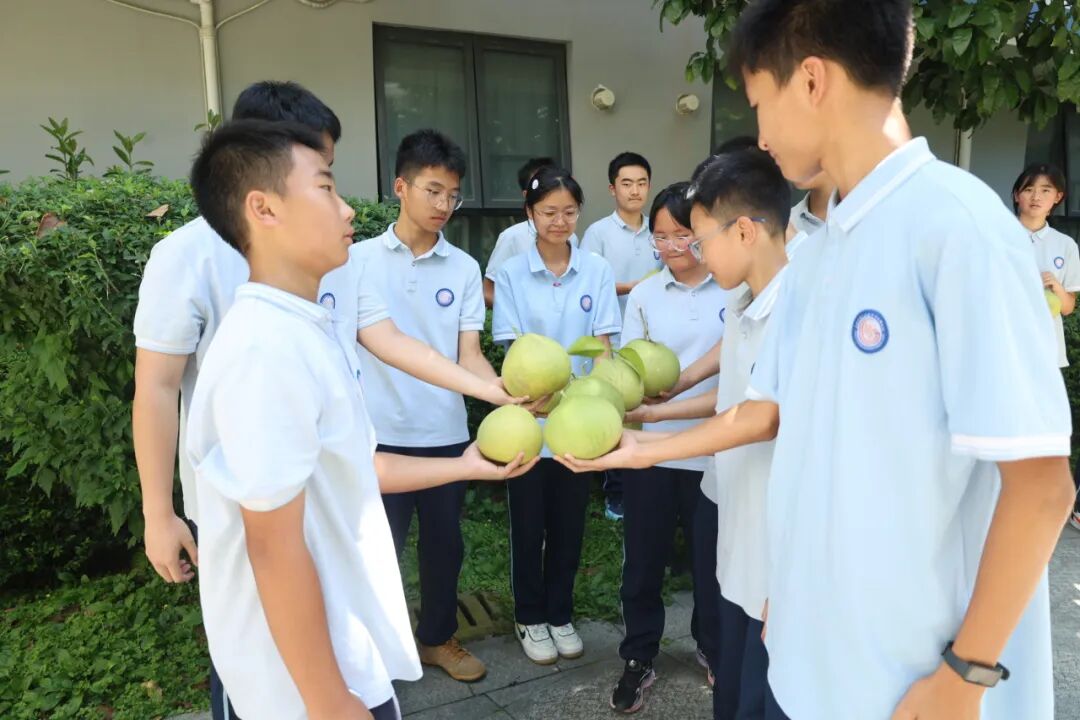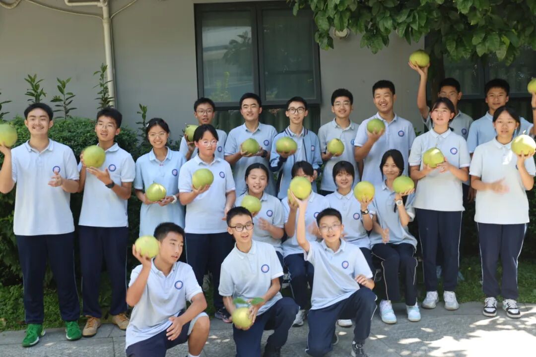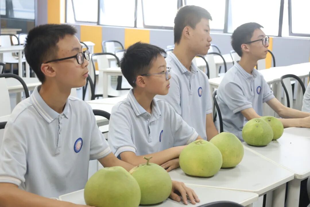 “柚”与“佑”同音,寄托着“庇佑成长、大有作为”的美好祝愿。初二、高二的同学们亲手采摘柚子,与家人一起熬制柚子茶,将秋天的清甜与家的温暖融进一杯杯茶中。
