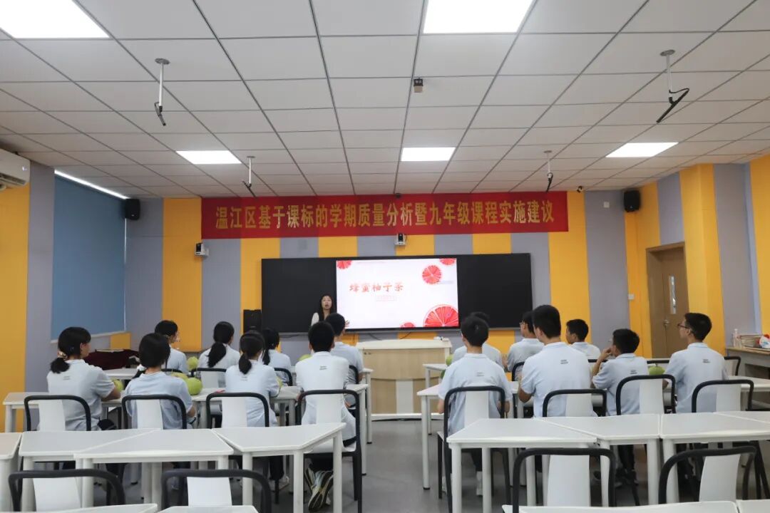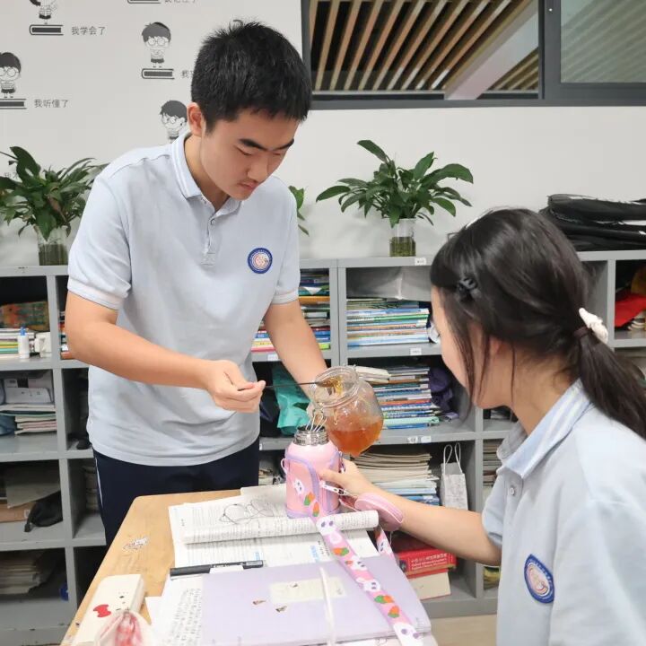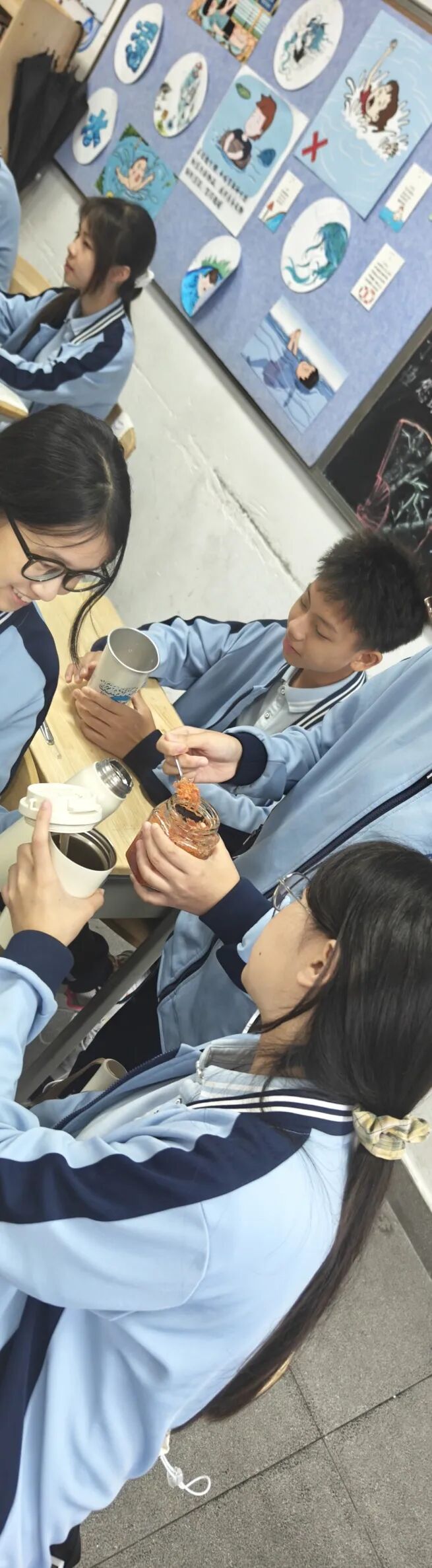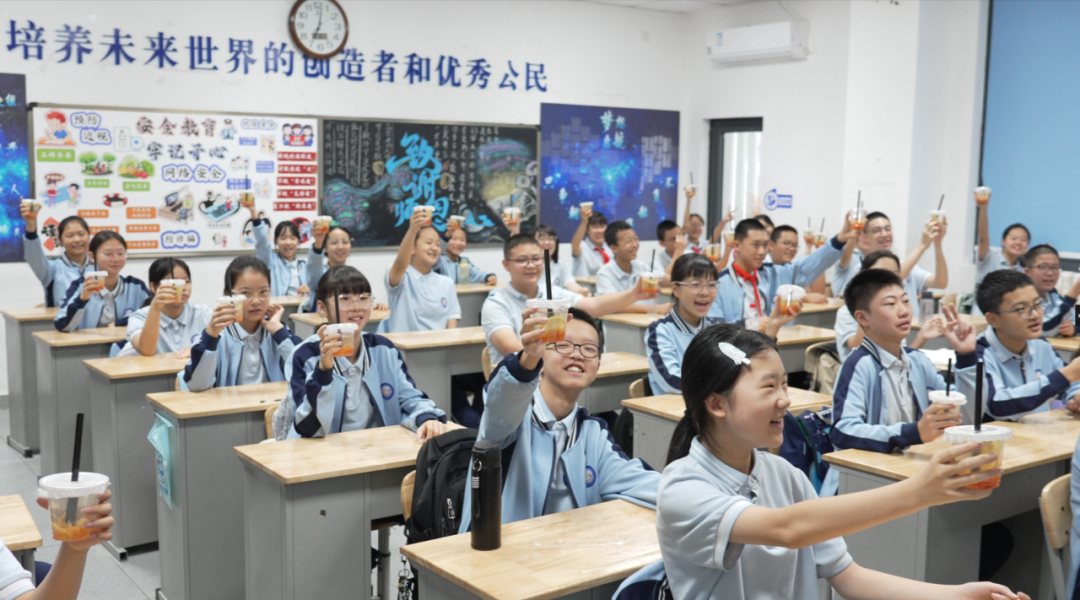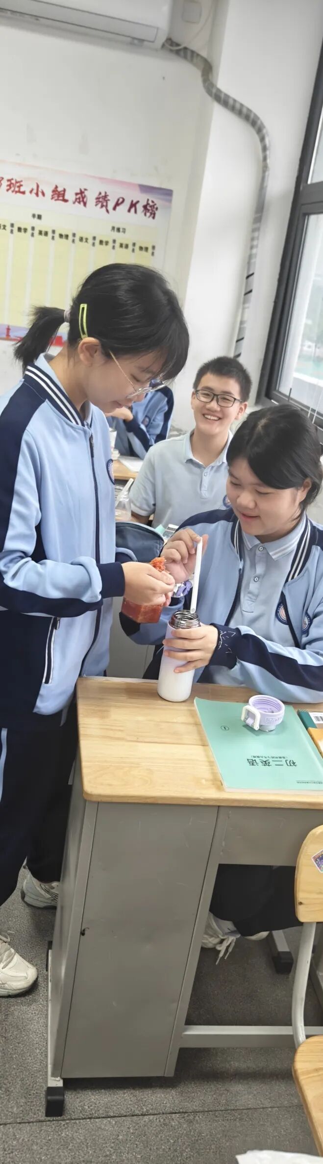 “柚”与“佑”同音,寄托着“庇佑成长、大有作为”的美好祝愿。初二、高二的同学们亲手采摘柚子,与家人一起熬制柚子茶,将秋天的清甜与家的温暖融进一杯杯茶中。