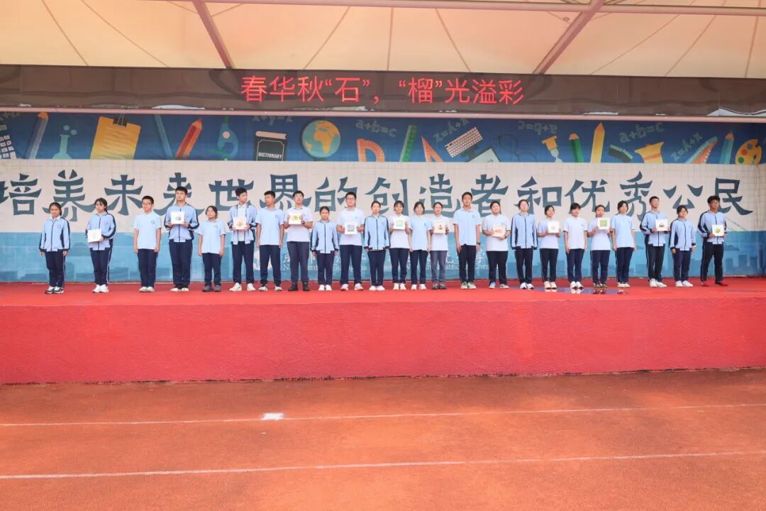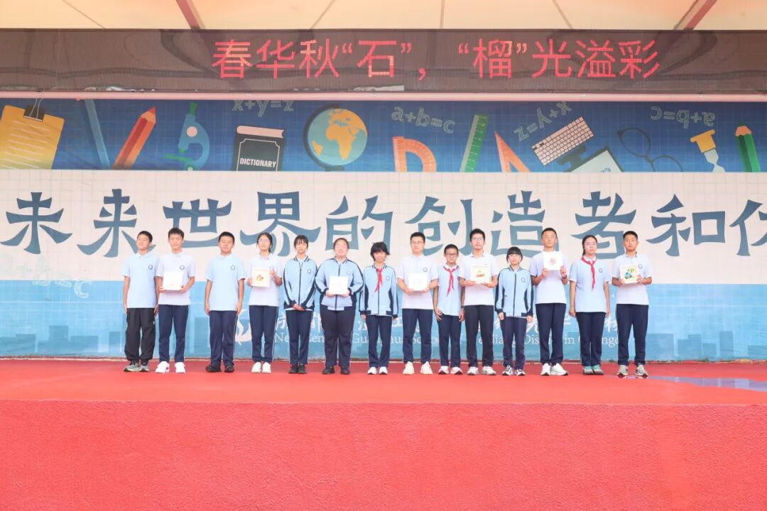 “颗颗石榴,紧紧抱团”,是校园里团结和谐的见证;更似学长学姐们三年的成长——从懵懂入学到奋力冲刺,他们在知识里沉淀、在努力中积累,就像石榴从青涩到饱满。 初一、高一的学生代表把这份预示着丰收的“石榴情”传递给初三、高三的学长学姐们,这不仅是一份礼物,更是一份寓意深远的鼓励——愿你们如石榴般饱满绽放,在明年的考场上“榴”光溢彩,金榜题名!