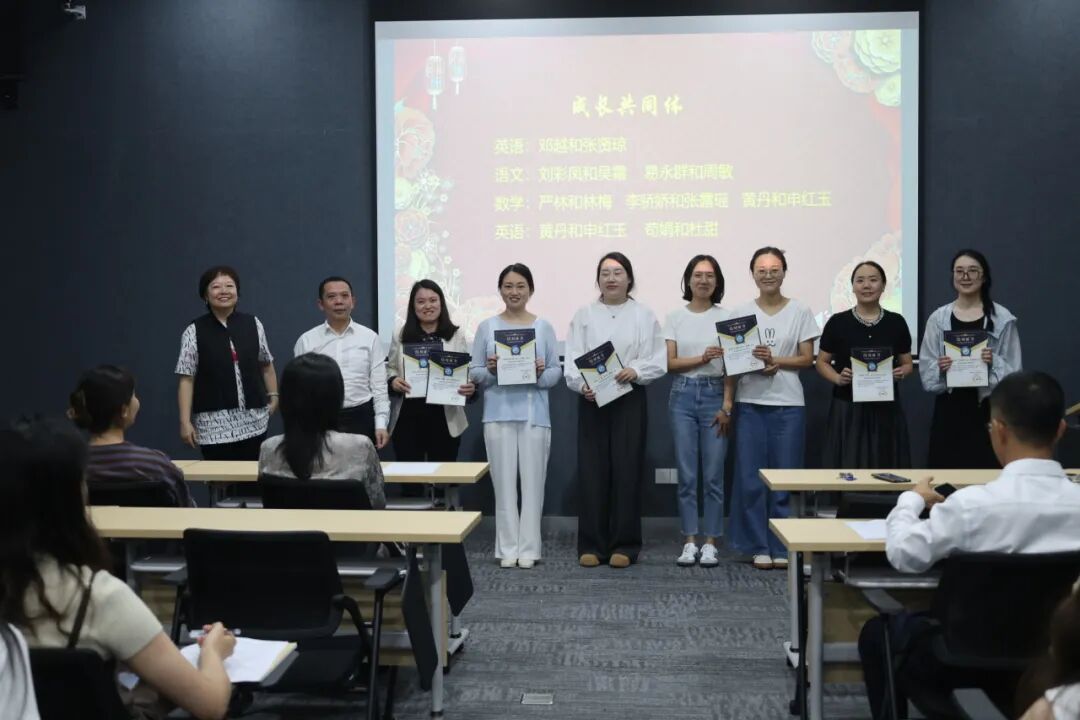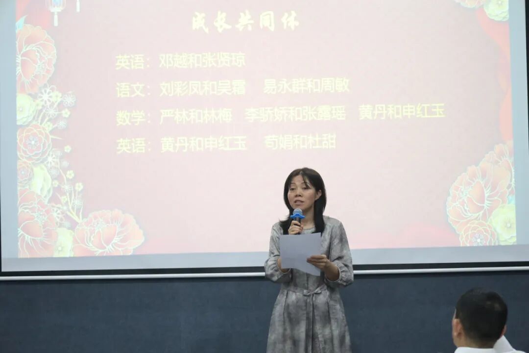 在全场期待中,毛英校长助理宣布“成长共同体”正式成立。该平台打破传统师徒结对的界限,构建更加紧密的学习团队,未来将通过集体备课、教学研讨、经验分享等形式,推动教师群体协同发展、共同进步。