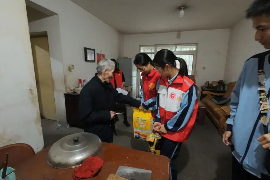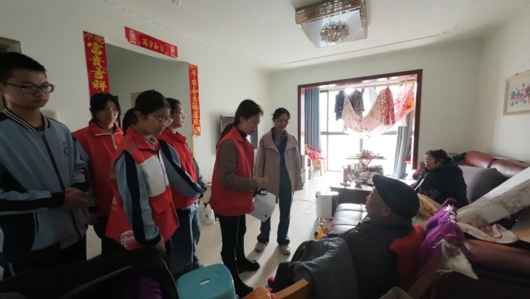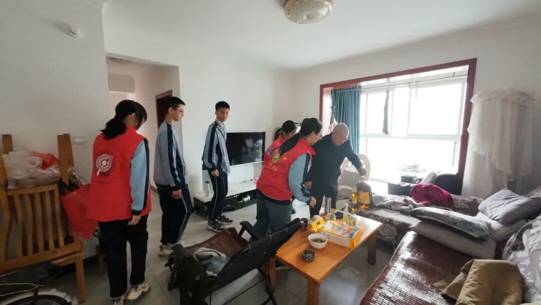 他们探望的对象中,有独自守望岁月的失独长辈,有与不便相伴却坚韧乐观的残疾老人,也有历经沧桑、需人陪伴的高龄长者。同学们轻轻拂去窗棂的微尘,整理家中的杂物,送上暖心的慰问品,随后围坐于老人身边,聆听那些沉淀在岁月里的往事。旧日回忆在轻声交谈中缓缓流淌,冷清的屋子因这份青春的陪伴,盛满了秋日的暖阳。