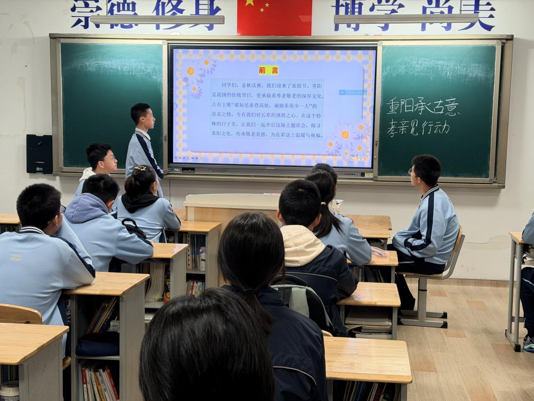 随后,各班组织开展了形式多样的“重阳承古意,孝亲见行动”主题班会。同学们在交流与探讨中,不仅加深了对重阳节文化内涵的理解,更在心中种下了感恩与孝亲的种子,让传统美德在校园中焕发新的生机。