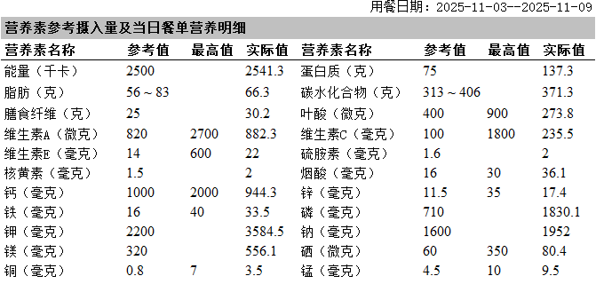 我们每一餐都秉持膳食“全面、均衡、营养”的原则,根据季节挑选当季时令瓜果蔬菜、新鲜水果、蔬菜、肉蛋奶、谷物等进行科学配比,制定每周营养食谱,每周更新。