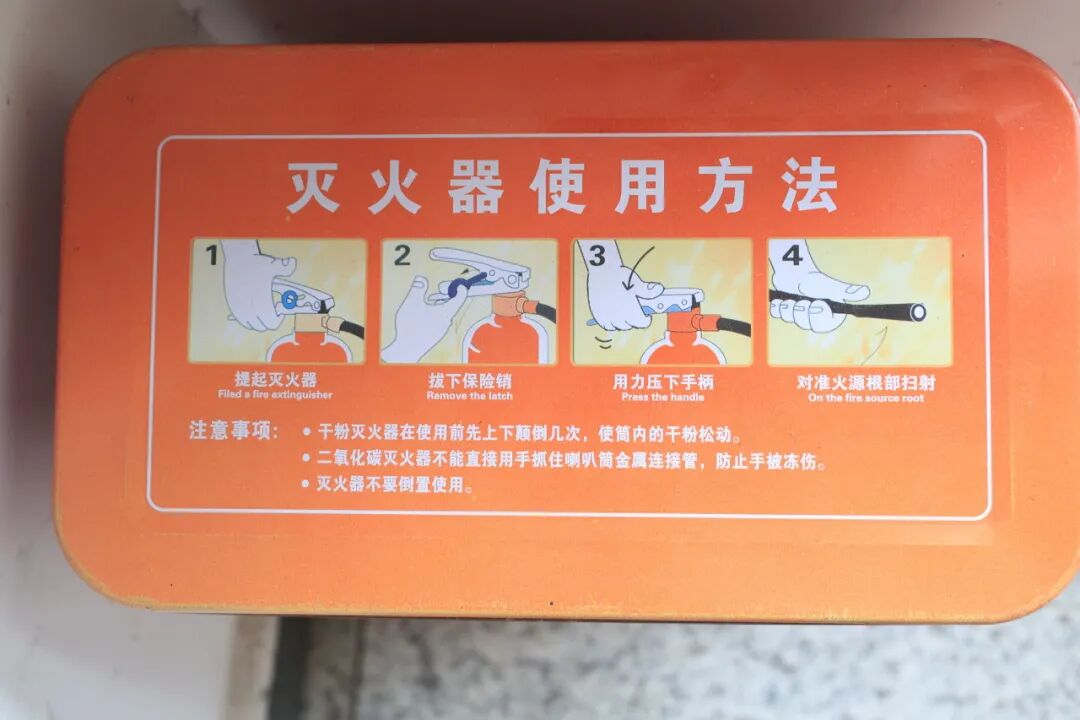 后勤工作人员详细讲解了灭火器的正确使用方法,演示了"一提、二拔、三握、四压"的操作要领,并指导学生代表现场实操。