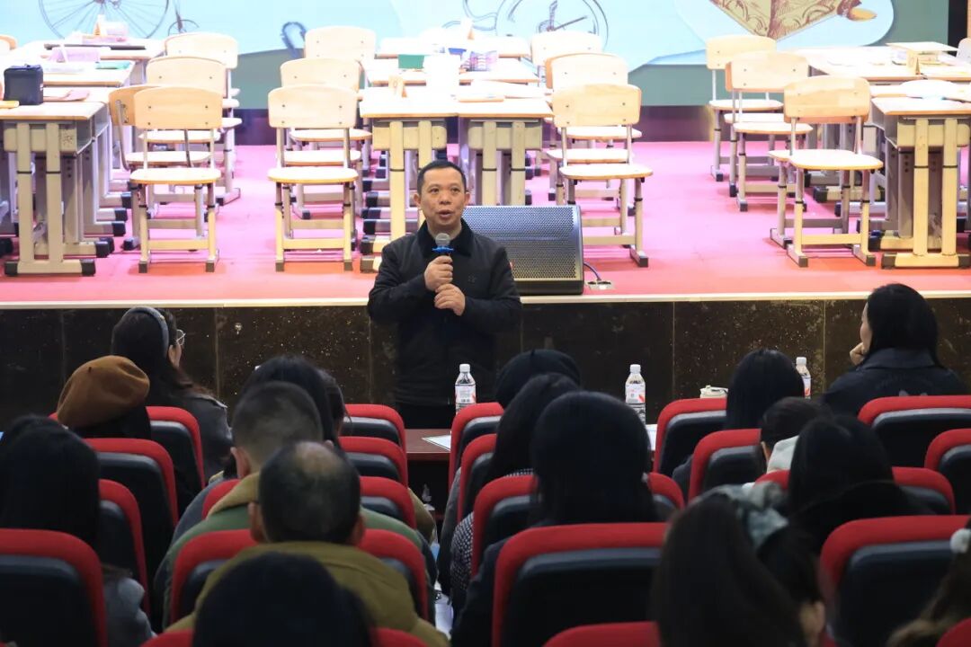 邓文光校长为活动致辞,对温江区教研员刘福莉以及兄弟学校老师们的到来表示诚挚欢迎,并感谢区教科院将本次教研活动安排在我校举行。