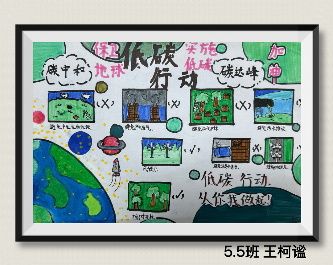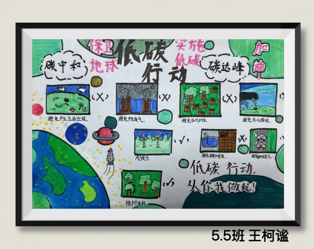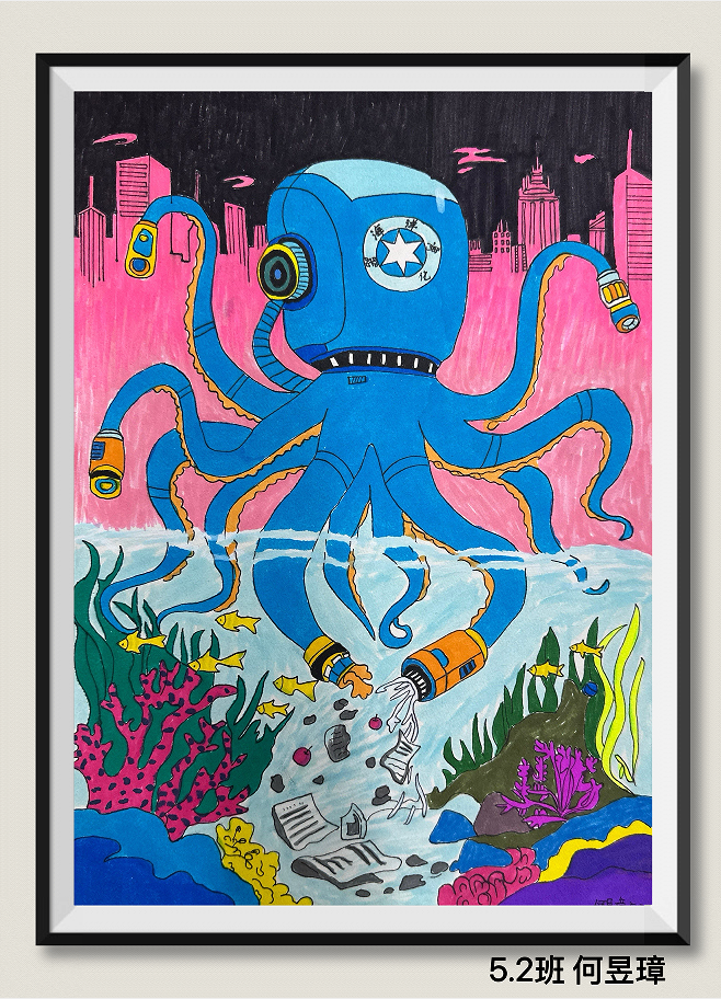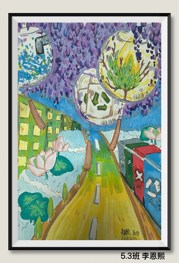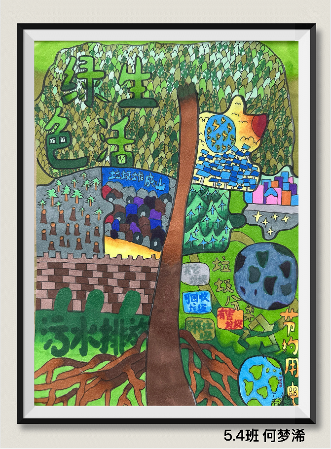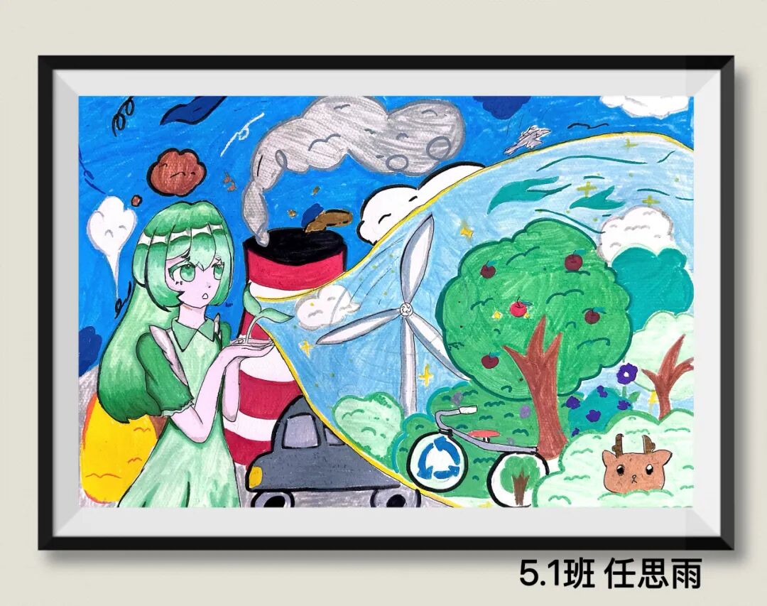 同学们用充满童真与巧思的作品,传递着对绿色环保生活的理解、海洋守护的思考,以及对未来家园发展的美好憧憬。