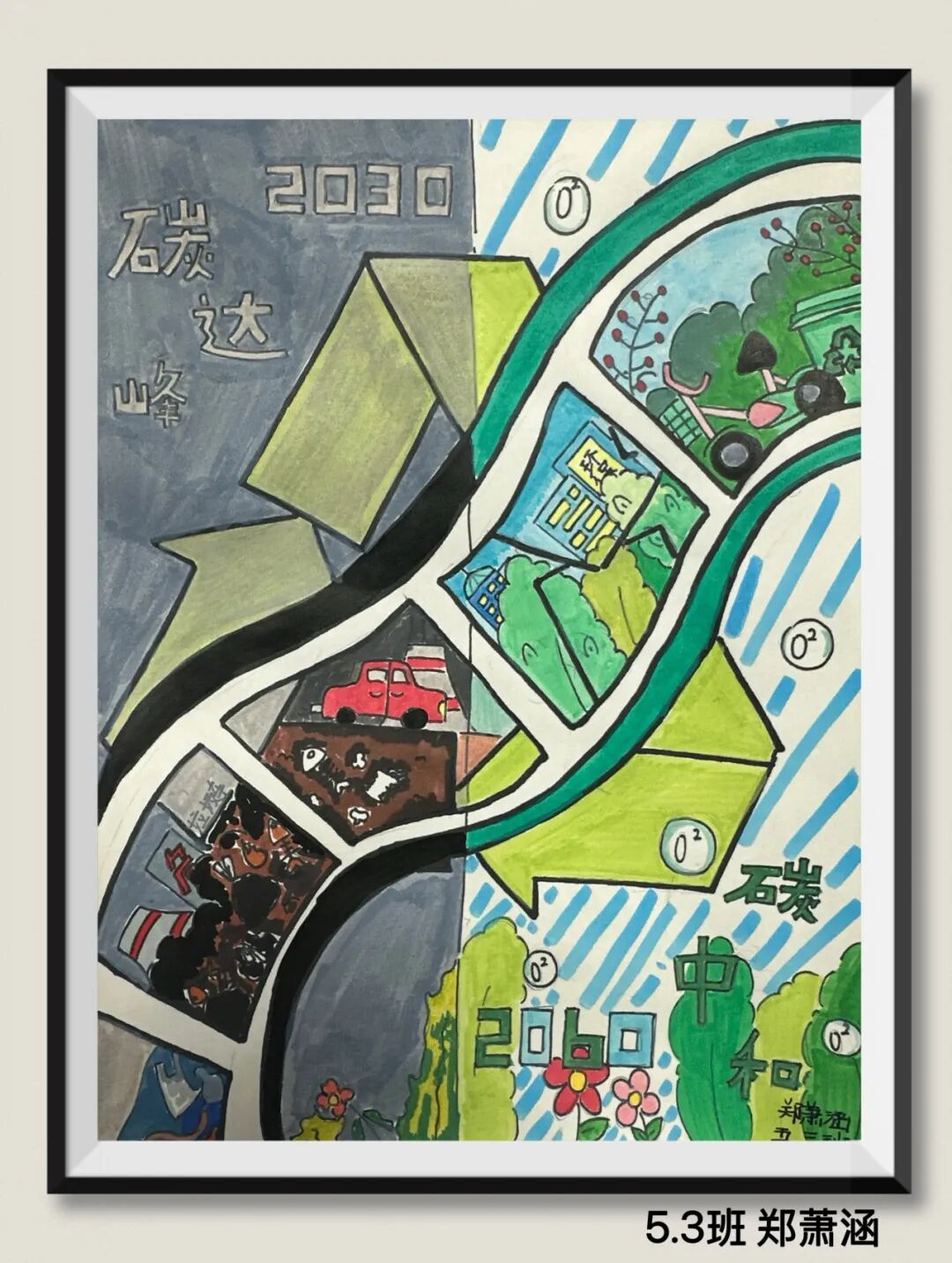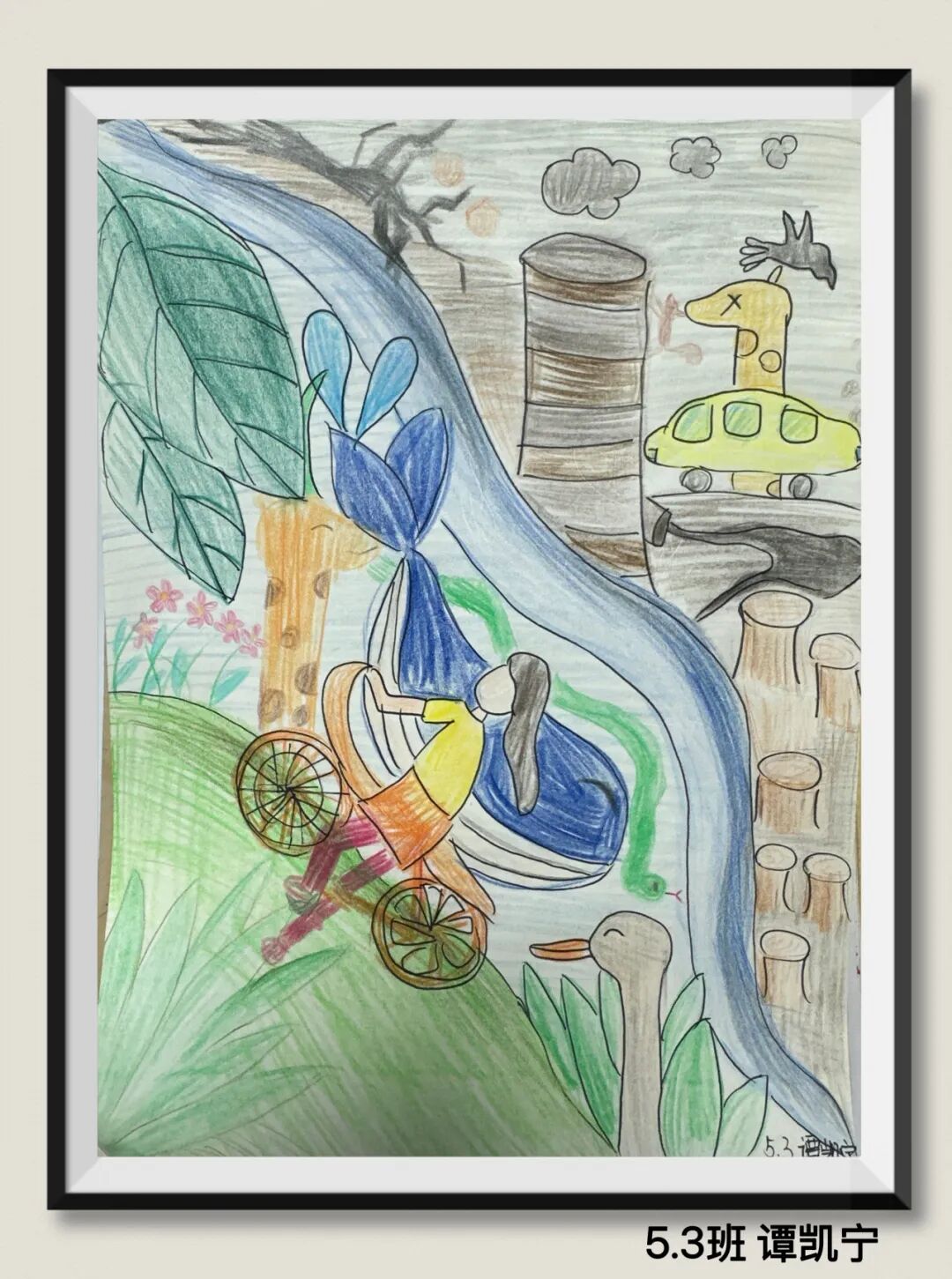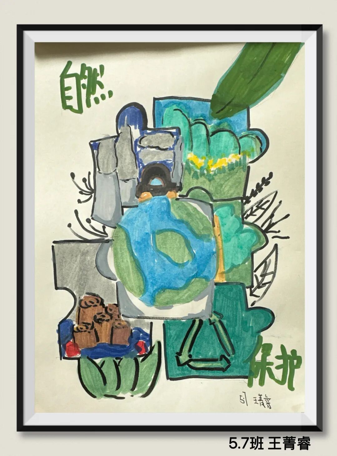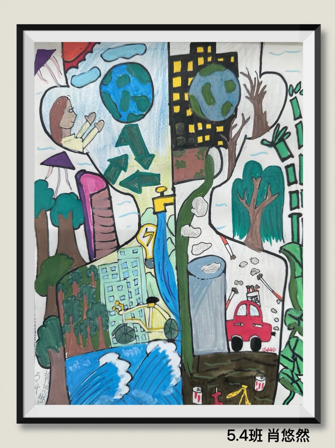 同学们用充满童真与巧思的作品,传递着对绿色环保生活的理解、海洋守护的思考,以及对未来家园发展的美好憧憬。