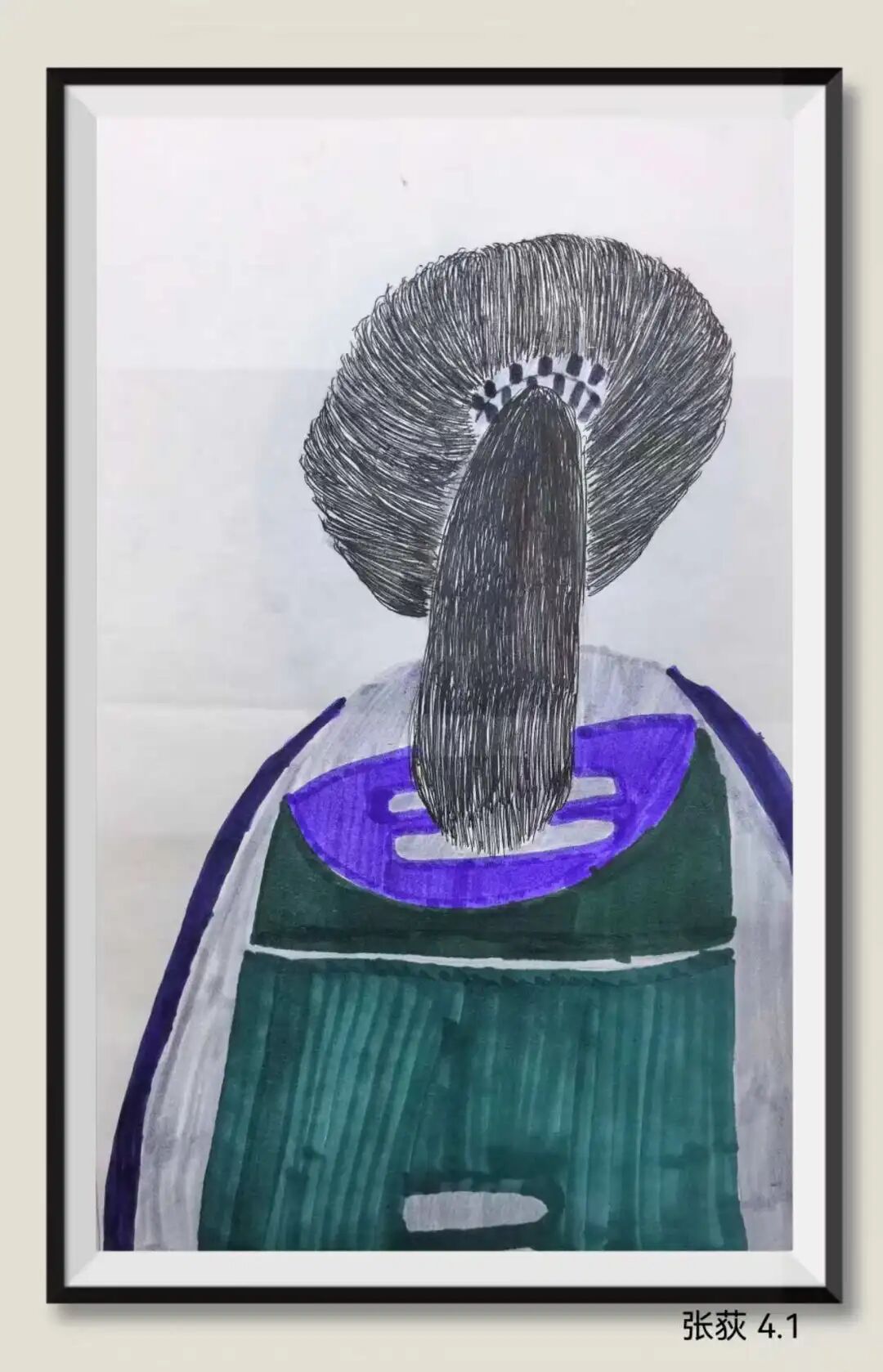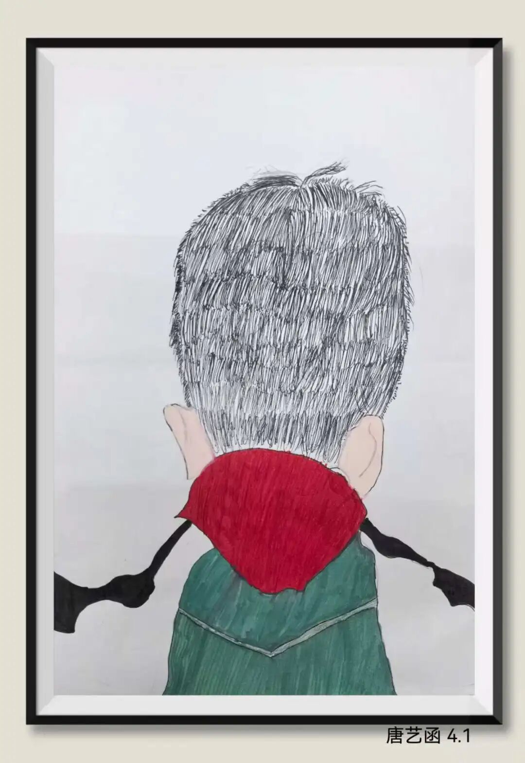 从后面认真地观察一位同学的头部外形,抓住发型特征,用线条细致地画出来。让同学们猜猜你画的是谁。