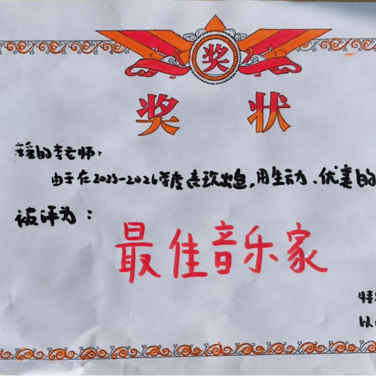 同学们亲手设计感恩奖状,有的绘上老师伏案备课的身影,有的写下“您的谆谆教诲,是我前行的灯塔”等暖心话语。当一张张独具匠心的奖状送到老师手中,不仅让老师感受幸福,更让同学们在“发现他人付出、主动表达认可”的过程中,建立起尊重与感恩的双向情感通道。