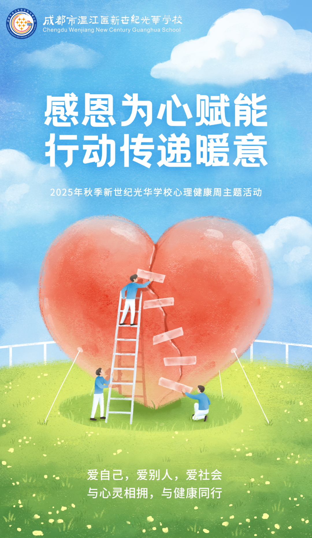 这个初冬,我们以爱为名,在新世纪光华学校的校园里,共同开启了一场关于感恩的积极实践。这场以 “感恩为心赋能,行动传递暖意” 为主题的心理健康周,正是我们学习构建持久幸福感的一堂生动课程。
