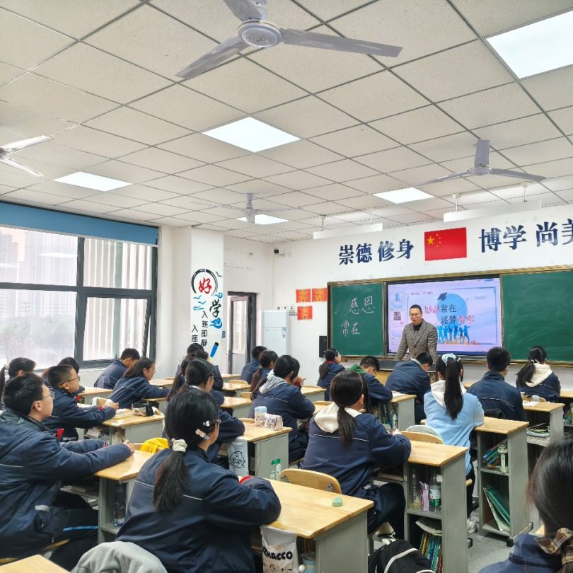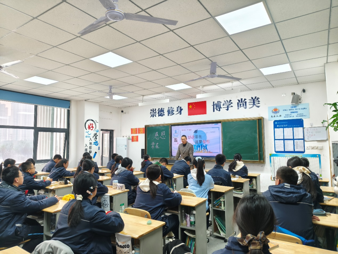 班主任通过“感恩盲盒”“情绪树洞”等趣味形式,引导学子敞开心扉;同学们分享被温暖的瞬间,讨论“如何用行动回应善意”,更共同制定了“一周感恩行动清单”。从认知感恩到规划行动,班会课让倡议不再是口号,而是转化为可触可感的日常实践。