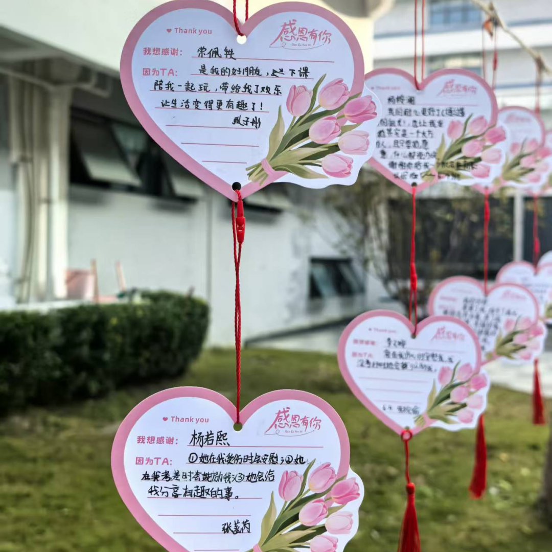 同学间的暖意,藏在一张张手写的“感谢小卡”里。同学们纷纷拿起笔,将日常里的点滴感动落于纸面:“上次跑操我鞋带松了,是你放慢脚步等我”“数学题卡壳时,你的解题思路比答案还管用”……这些带着温度的字迹,让同窗情谊在细节中愈发醇厚,也让互助互爱的种子悄悄扎根。