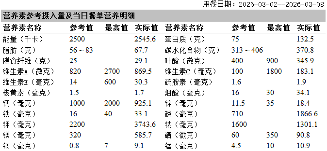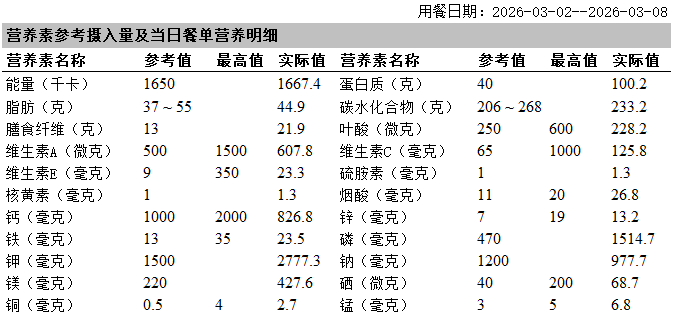 我们每一餐都秉持膳食“全面、均衡、营养”的原则,根据季节挑选当季时令瓜果蔬菜、新鲜水果、蔬菜、肉蛋奶、谷物等,这些食物富含丰富的膳食纤维,进行科学配比,制定每周营养食谱,每周更新。
