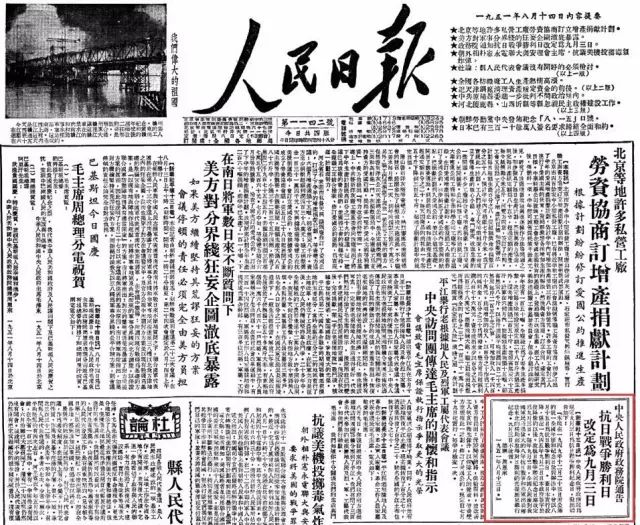 将抗战胜利纪念日改定为9月3日。