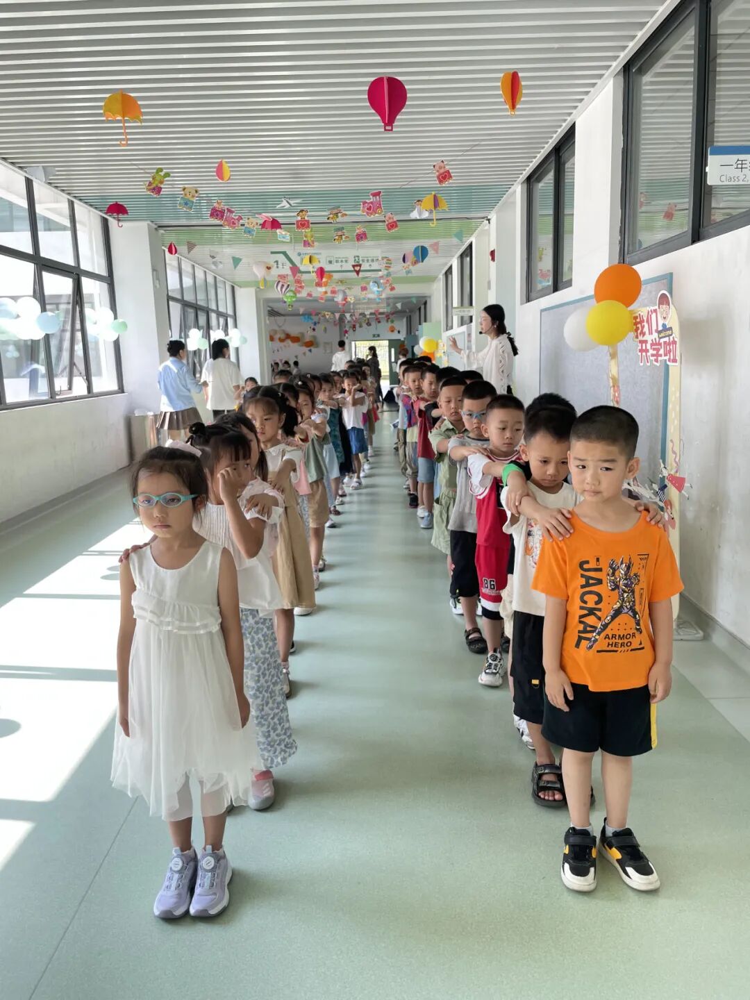 2-6年级的哥哥姐姐们穿戴整齐,背着书包再次踏入温馨的校园,一路上时而蹦蹦跳跳、时而低声交谈、时而欢呼拥抱,准备了一箩筐的话儿迫不及待要和老同学们分享。