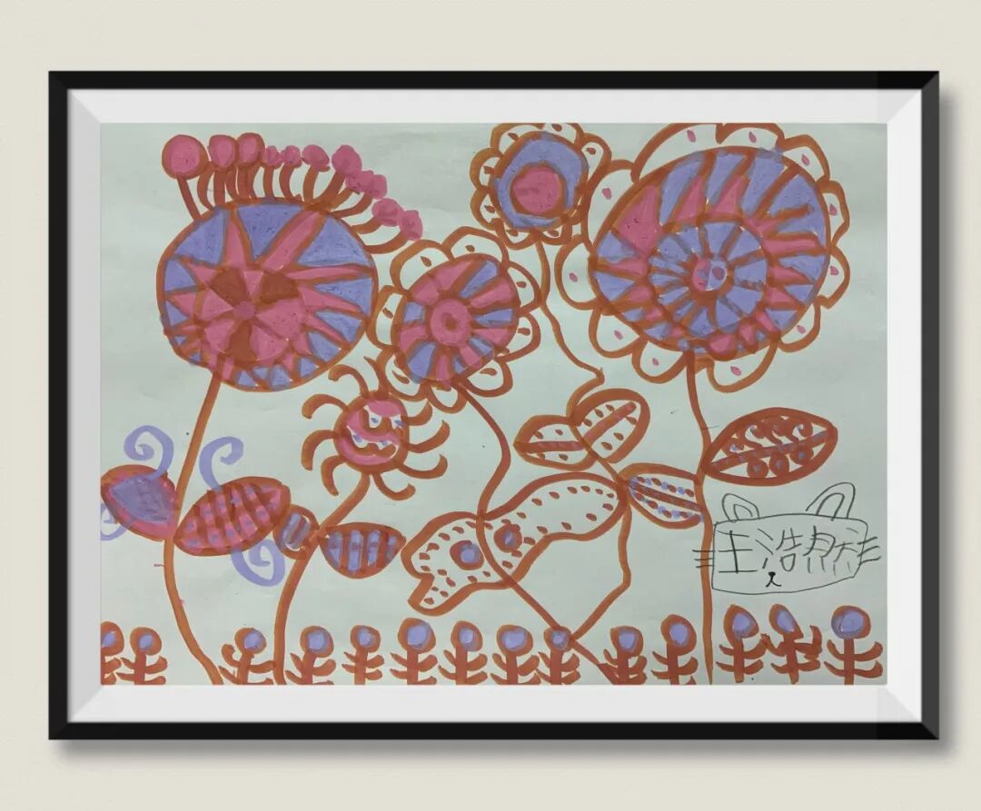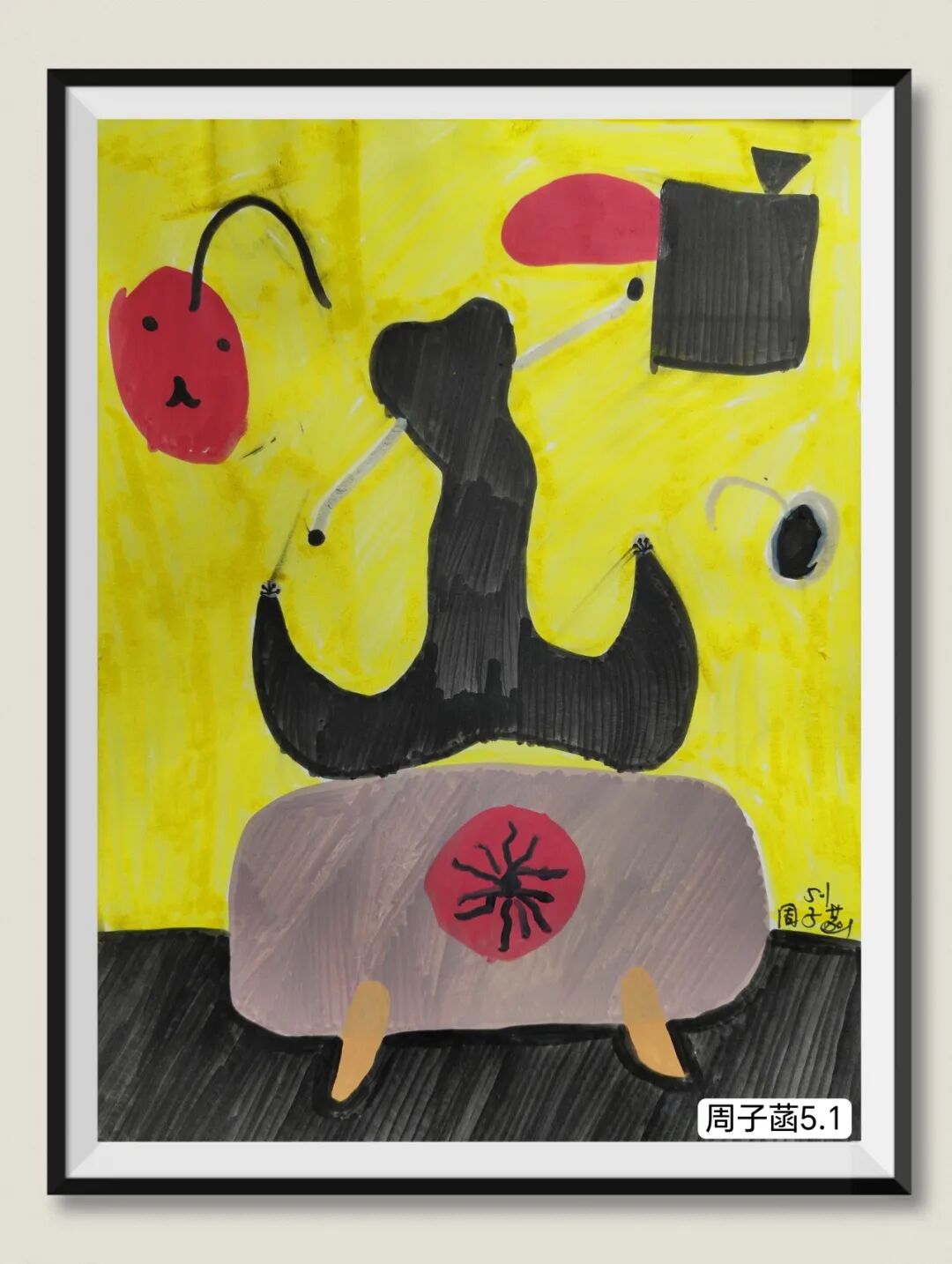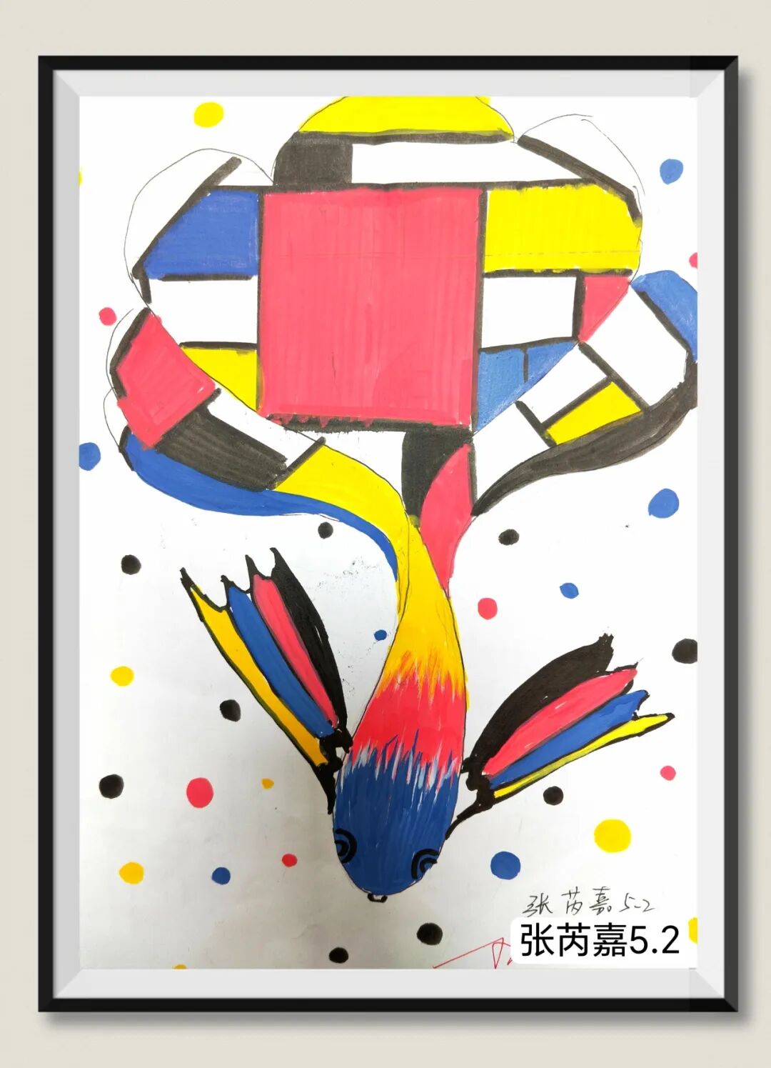 一幅幅抽象画,孩子们只用基本的美术语言表达出抽象的画面,如音乐的节奏,如色彩的舞曲,充满了无拘无束的活力。