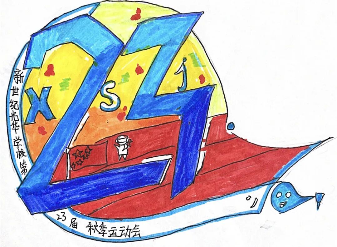 本次活动共分为小学组、初中组、高中组,共收到数百件会徽设计作品,最终由初二三班李欣娅同学设计的运动会会徽得到了评委老师的一致认可,获得特等奖,被采用为第二十三届运动会会徽。