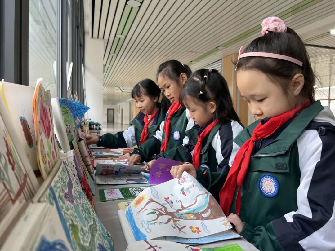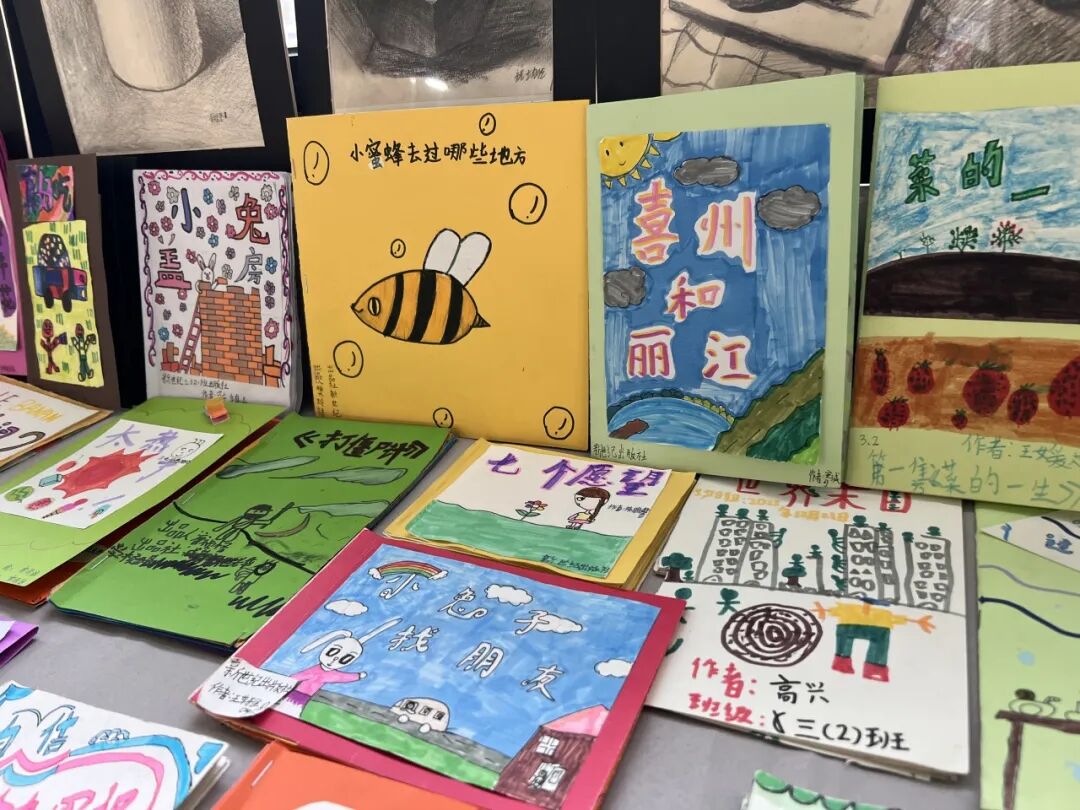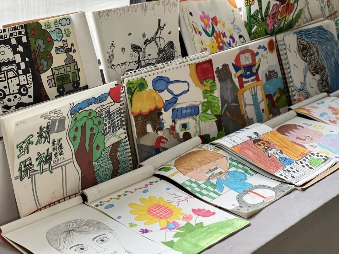 高年级孩子展示了美术作业本,这就是孩子的美术馆。描绘的主题鲜明、题材多样的展品,体现出新世纪学子的良好艺术素养;构思新颖、色彩明快的画作,呈现出孩子们对艺术之美的理想与追求。