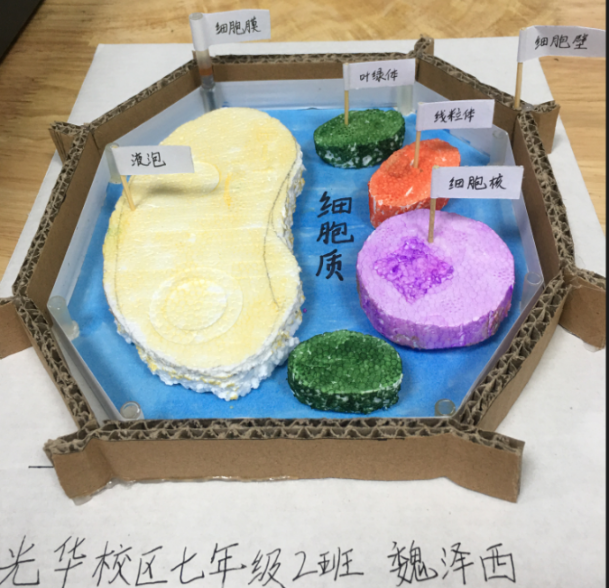 为贯彻落实素质教育,提升学科核心素养,让“双减”政策有效落地,提高作业设计质量、布置科学合理高效作业,用实践活动带动知识落实,培养综合素质,促进学生全面而丰富的发展。在学习了《细胞是生命活动的基本单位》之后,我校初中生物组开展了“以细胞之微、展生命之美”细胞模型制作的实践活动。通过制作细胞模型,用简化和直观的形式来展现复杂的事物和过程,使较抽象的、难以理解的重要概念和原理清晰地呈现,使零散的知识逐渐系统化和直观化,从而使学生获得生物学概念和原理的准确含义,进而提高学生善于探究、敢于创新、勇于实践的生物科学能力,让学生在活动中了解生物知识、喜爱生物学科,充分展示创新能力。