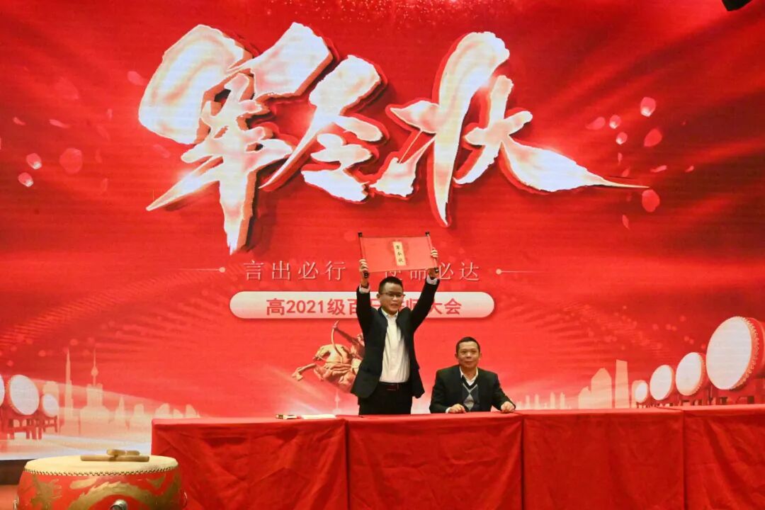 “黄沙百战穿金甲,不破楼兰终不还。”邓文光校长宣读了由分管高2021级的学校领导李世建副校长递交的2024年高考“军令状”,各班班主任与分管领导签订高考目标责任书。高2021级全体师生将全身心地投入备考,百折不挠,勇往直前,不遗余力。战旗猎猎,鼓声阵阵,高考冲击战即刻打响!高三各班更是拉开横幅宣誓,展示各班的决心与斗志!