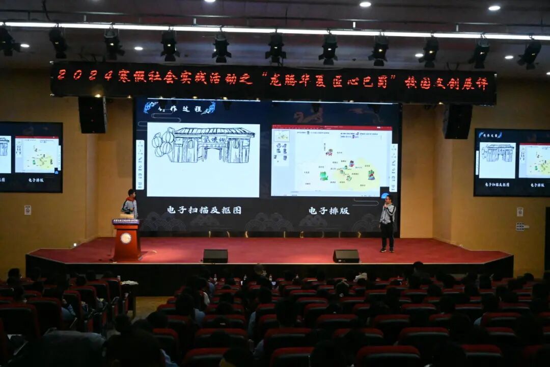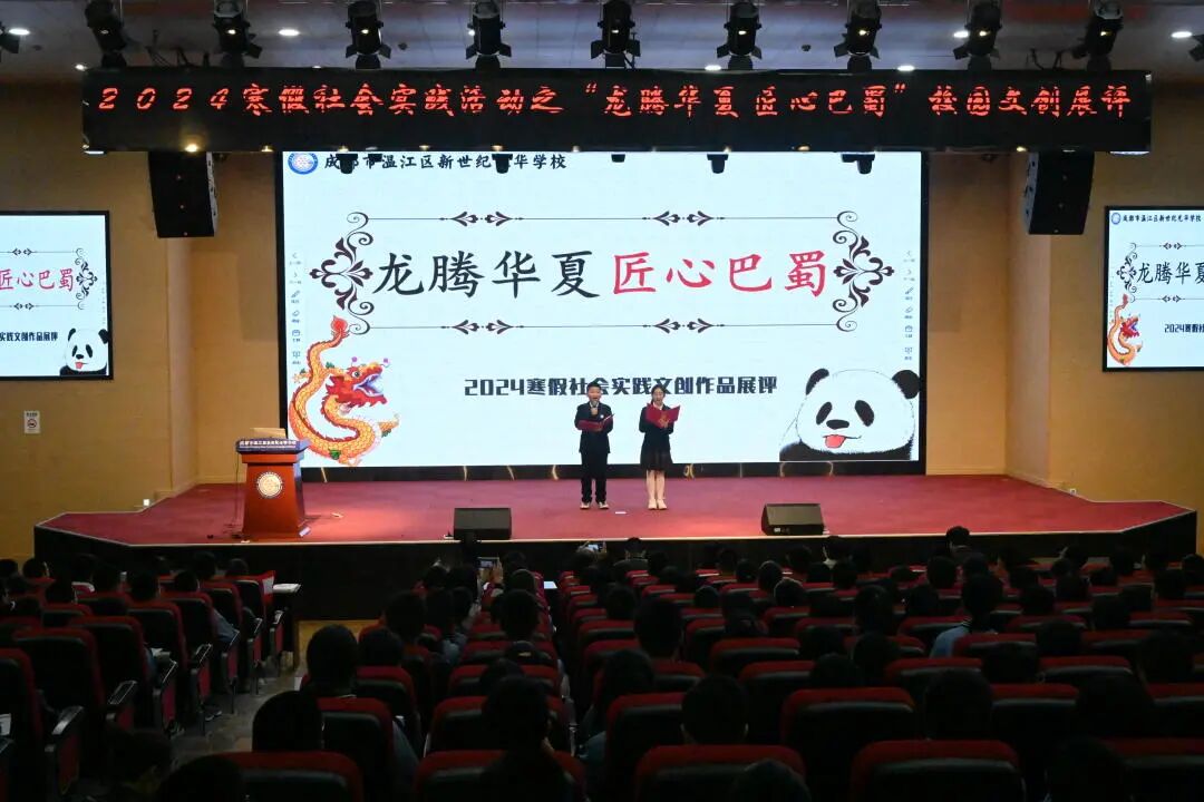 2024年3月21日晚上7点,“龙腾华夏 匠心巴蜀”2024寒假社会实践展评会在学术报告厅举行。学校邓文光校长、杜毅副校长、李星副校长、李世建副校长、学生部黄宁兵主任,学生部黄焱副主任、各年级年级组长与学生代表等参加本次活动。