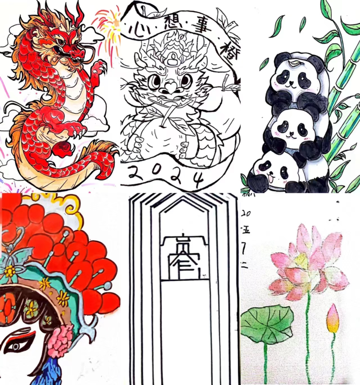 锦里池中锦鲤游,宽窄巷中喜迎春。来自初三雅墨11班的马郡浠小组在假期召开线上会议,细致分工,团队合作,将龙文化、传统文化与成都文化创意结合,制作了一份精美的龙年日历。在他们的日历中,我们可以身临其境的感受到兔龙交替,甲辰龙年中的美好景致。