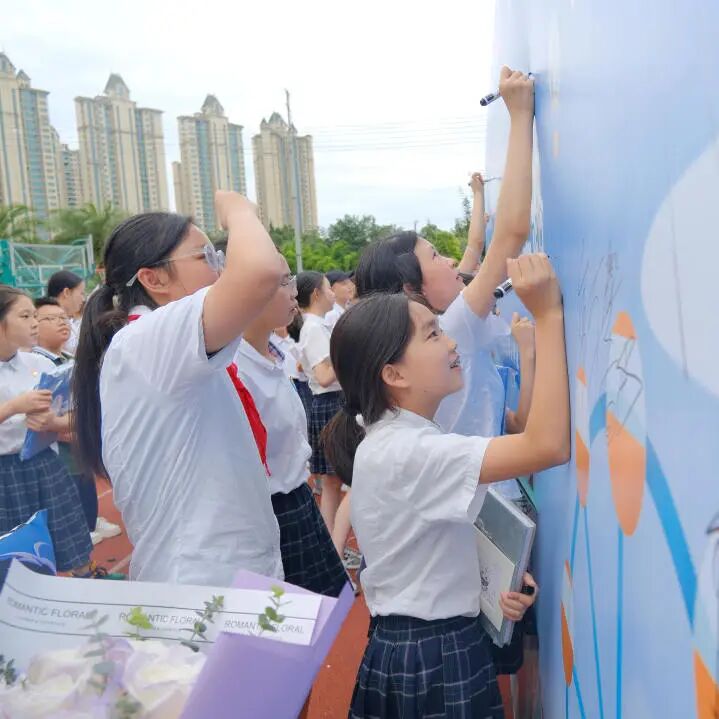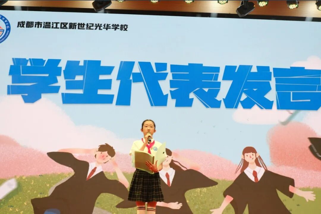 典礼上,6年级2班李沁馨同学,代表所有毕业生发表了感言,对辛苦付出的每一位老师,对朝夕相伴的每一位同学,对殷切护航的每一位家长,对共同陪伴的母校,表达了深切的感激与祝福。